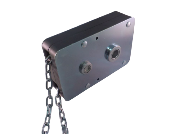 Nosto-oven ketjutalja 4:1. Voidaan asentaa suoraan 25,4mm aksilaan (1 tuuma).